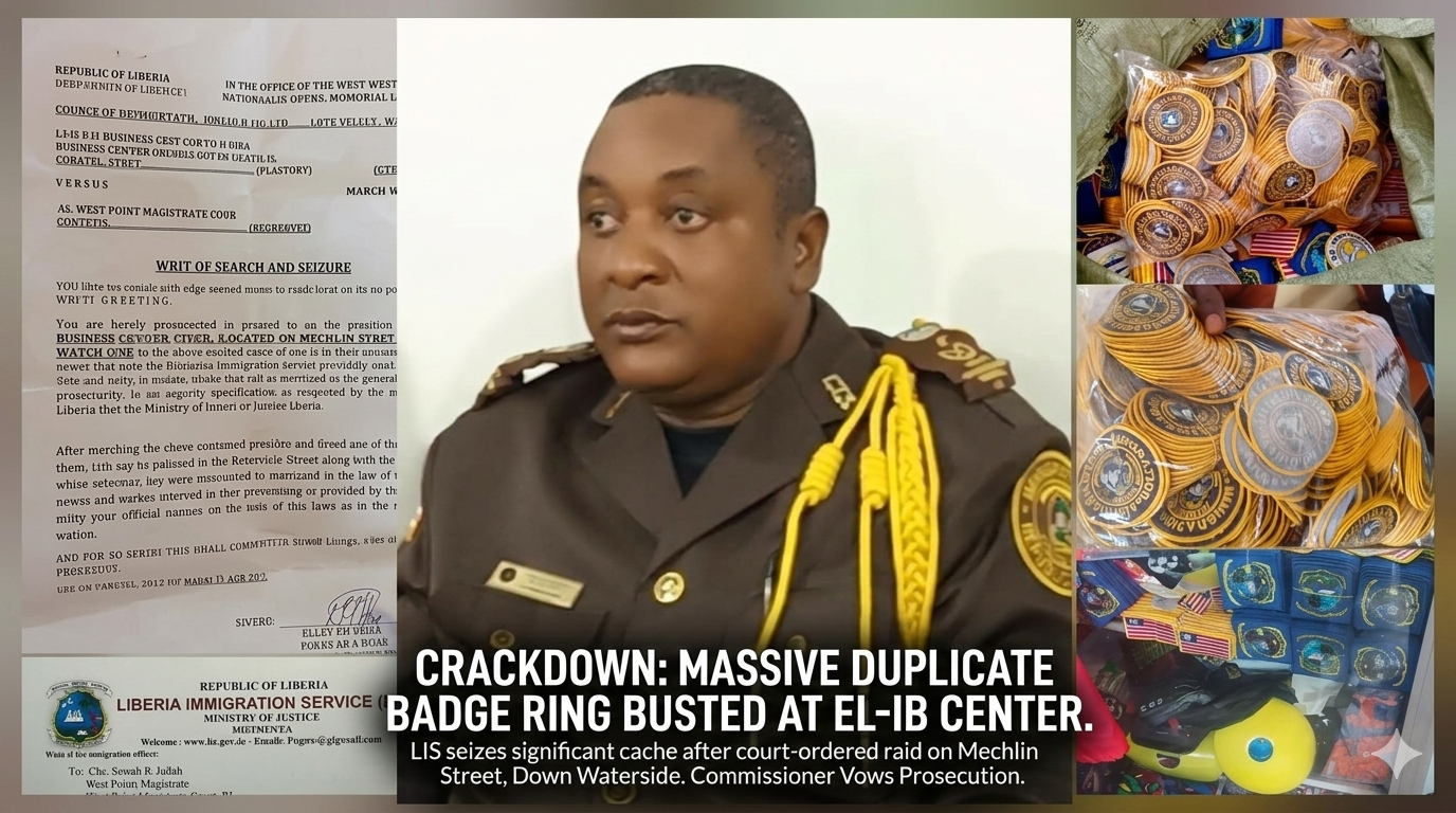 MONROVIA, LIBERIA — Authorities from the Liberia Immigration Service (LIS) have seized a significant quantity of counterfeit security badges following a targeted raid on the EL-IB Business Center on Mechlin Street, Waterside.